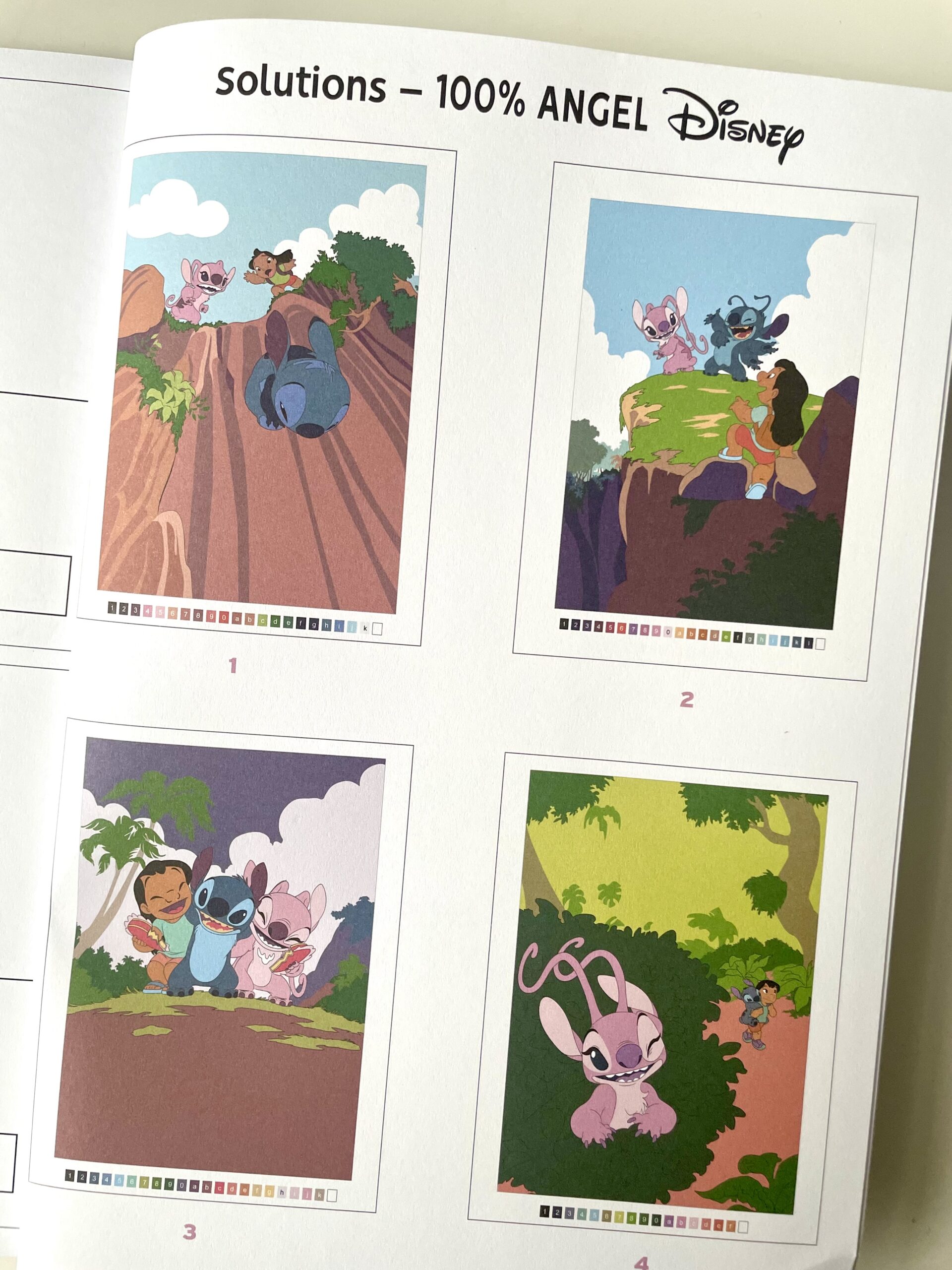 J’ai réalisé 10 illustrations en couleurs pour les solutions du livre de coloriage 100% Angel, inspiré de l’univers Lilo & Stitch.