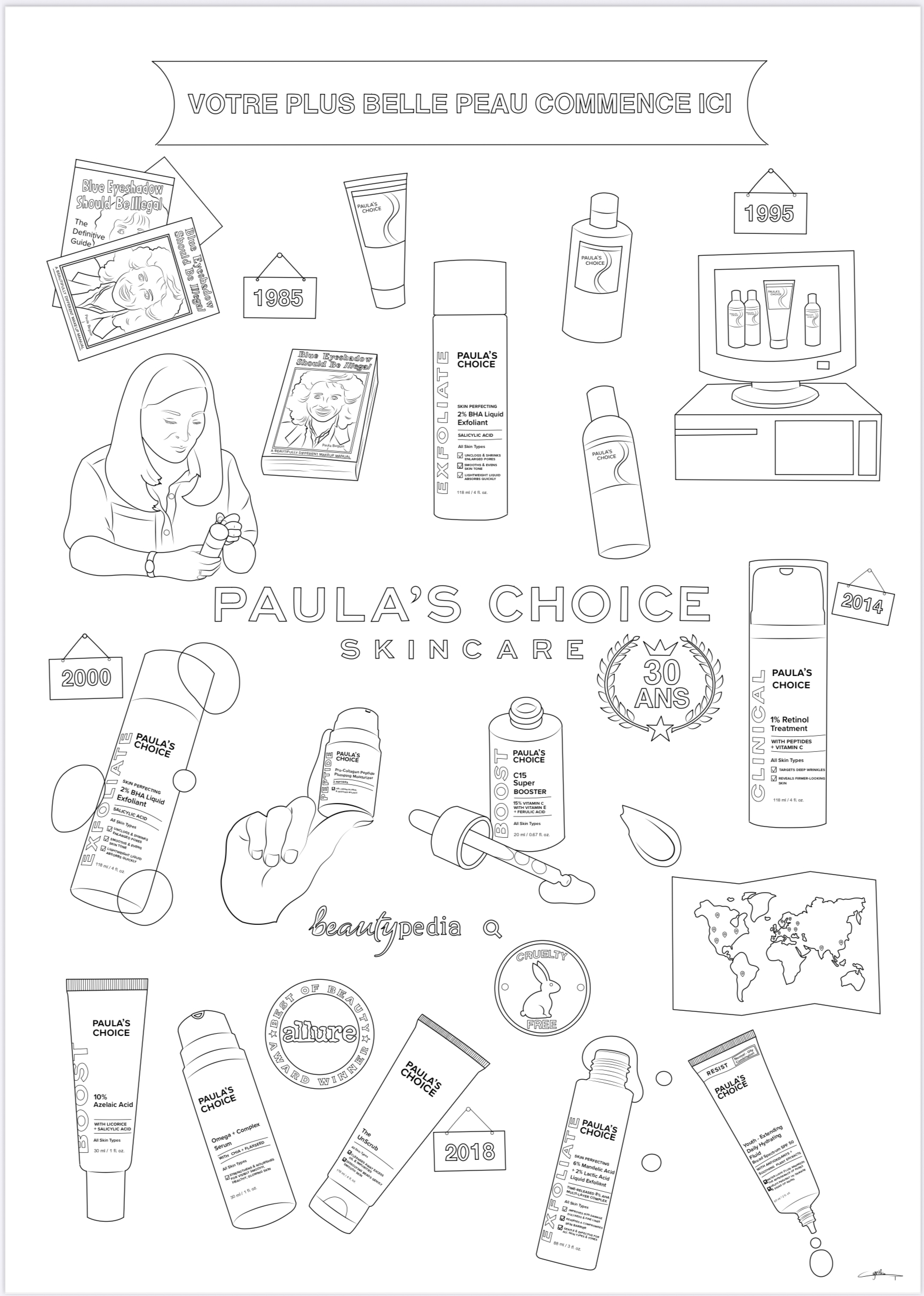 Pour l’événement influenceur sur les Champs-Élysées, j’ai réalisé 2 dessins de coloriages pour Paula’s Choice :